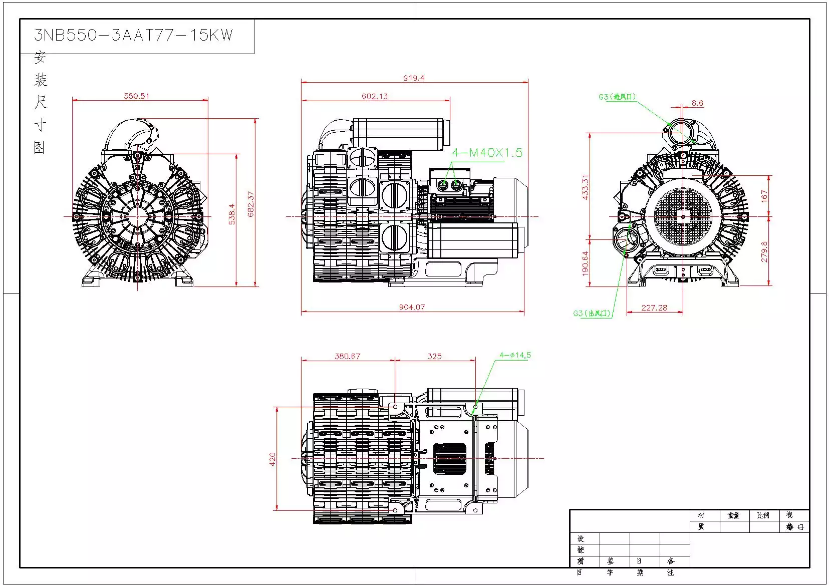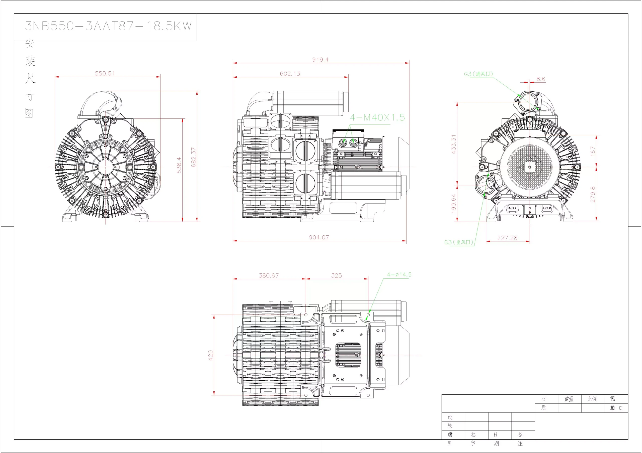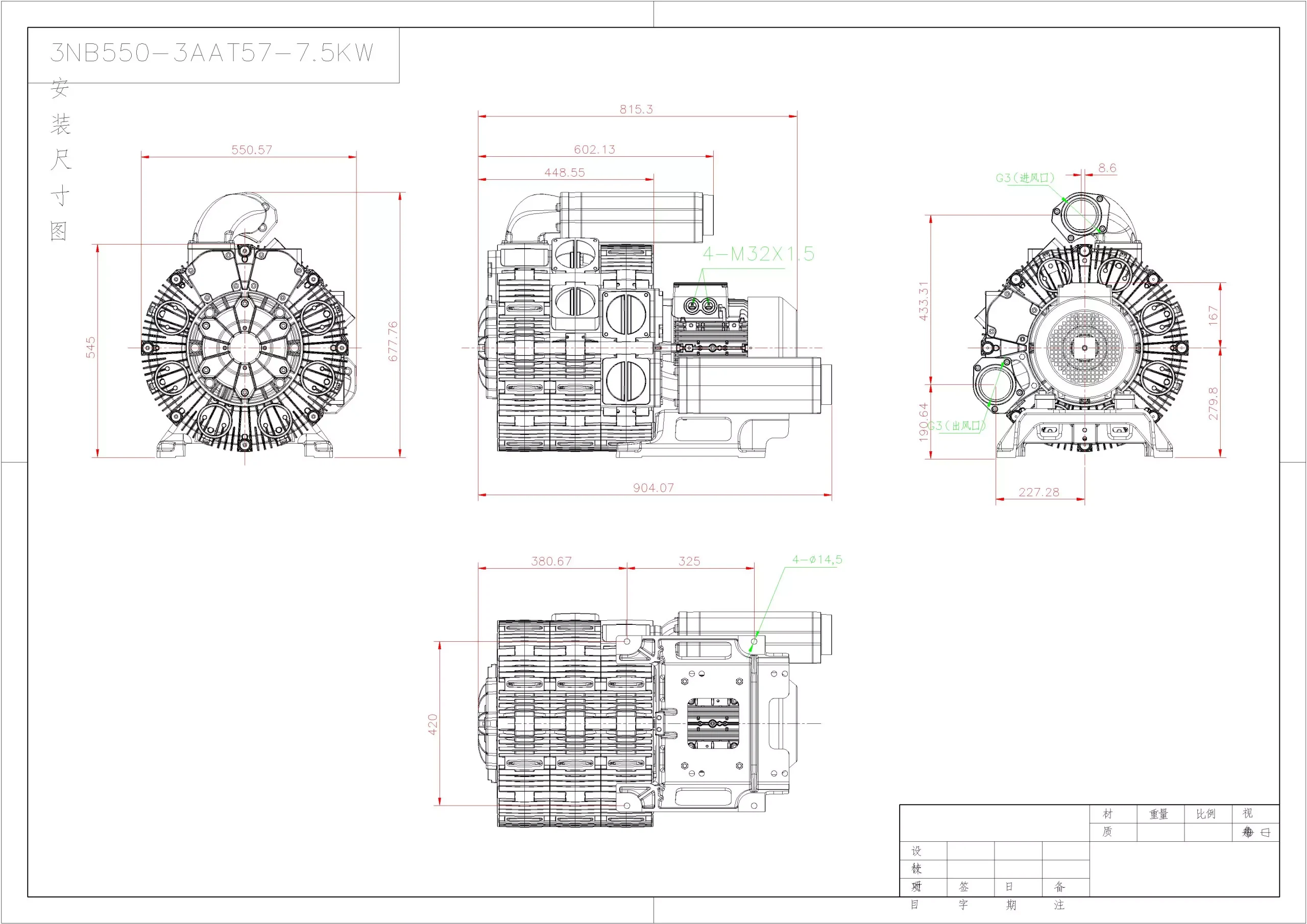 3NB 3AA Series Blower Dimension Diagram