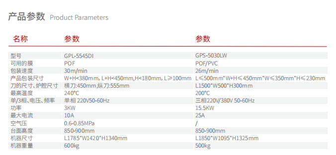 GPL-5545DI+GPS-5030LW Parameters